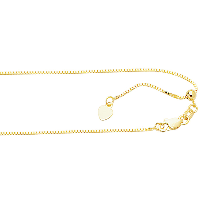 System Description | 10K 22in Yellow Gold Polished Adjustable Box Chain with Lobster Clasp |