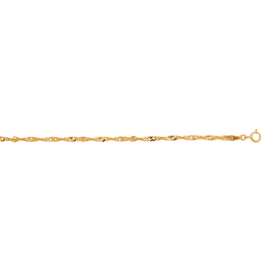 Description | 10K Yellow Gold 2.2mm Singapore 7" Chain Bracelet with Spring Ring Clasp |