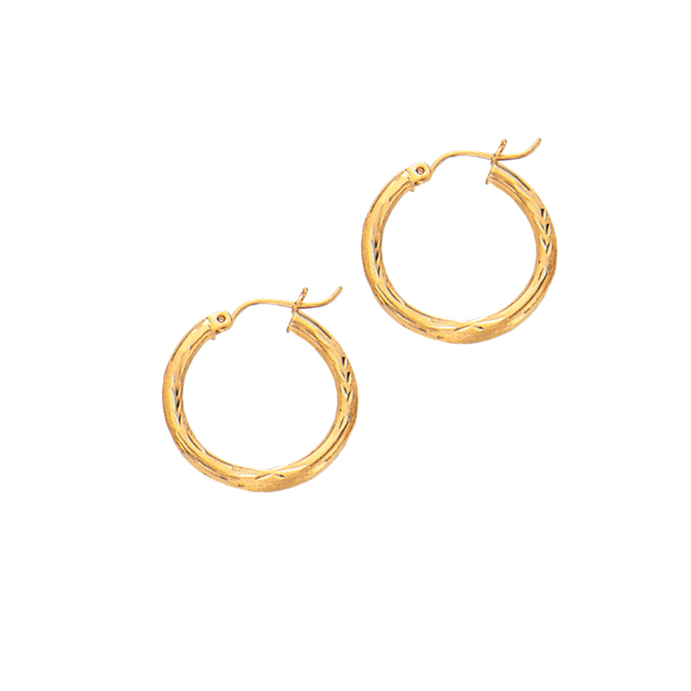 System Description | 10K Yellow Gold Diamond Cut/ Textured Earring with Hinged Clasp |