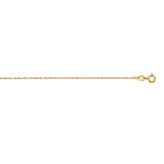 Description | 10K Yellow Gold .85mm Machine Rope 16" Chain Carded with Spring Ring |