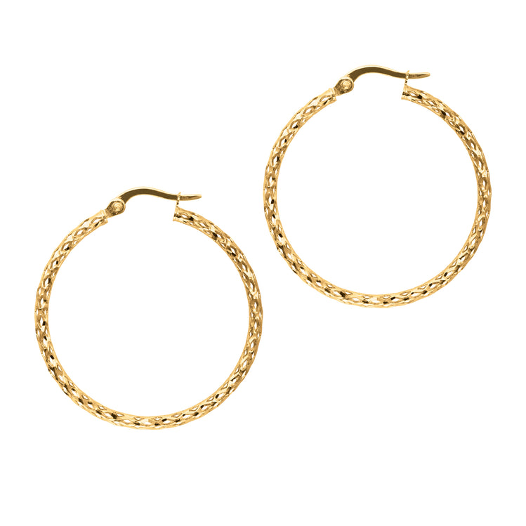 Description | 10K Yellow Gold Round Diamond Cut Hoop Earring |
