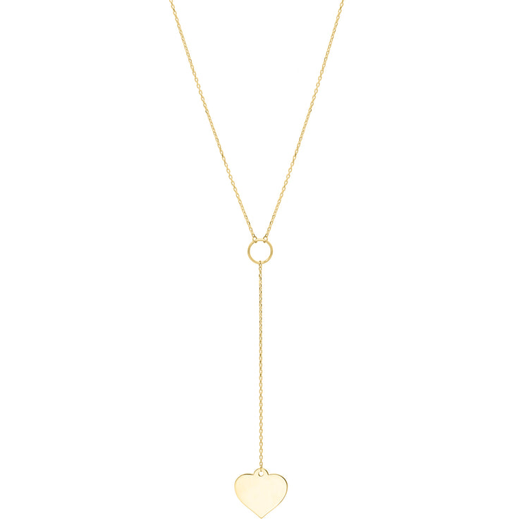 System Description | 10kt Gold 18in Yellow Finish Lariat Heart Necklace |