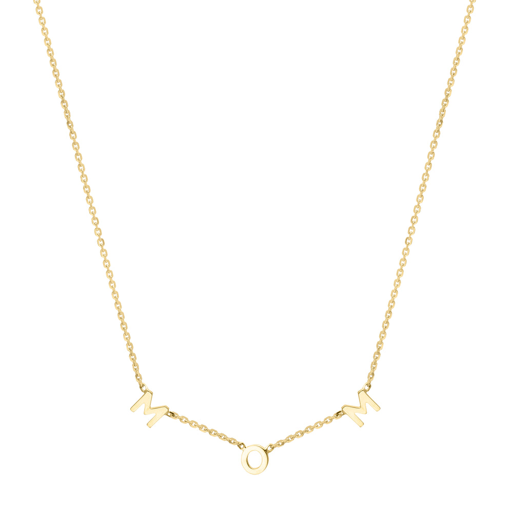 Description | 10K Yellow Gold Polished "Mom" 18" Necklace with Lobster Clasp. Jump ring at 16". |