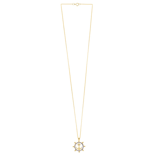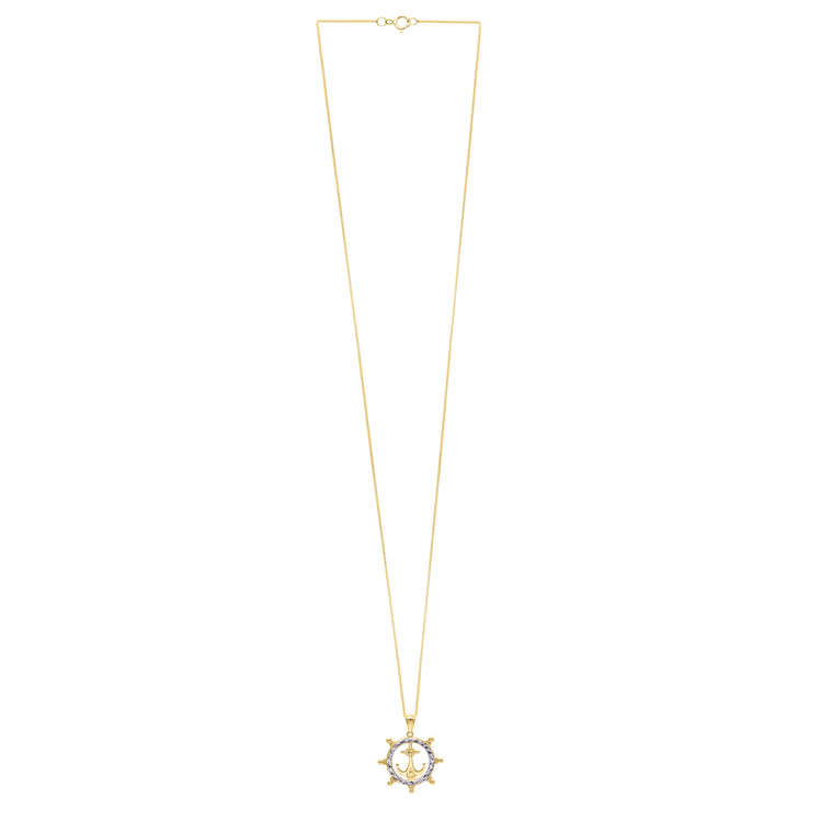 10K Ship's Wheel Anchor Necklace-Two-tone | Spring Ring
