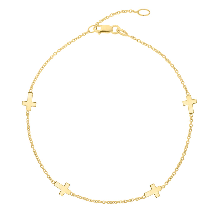 Description | 10K Yellow Gold Polished Sideways Cross 10" Anklet with Lobster Clasp. Jump ring at 9" |
