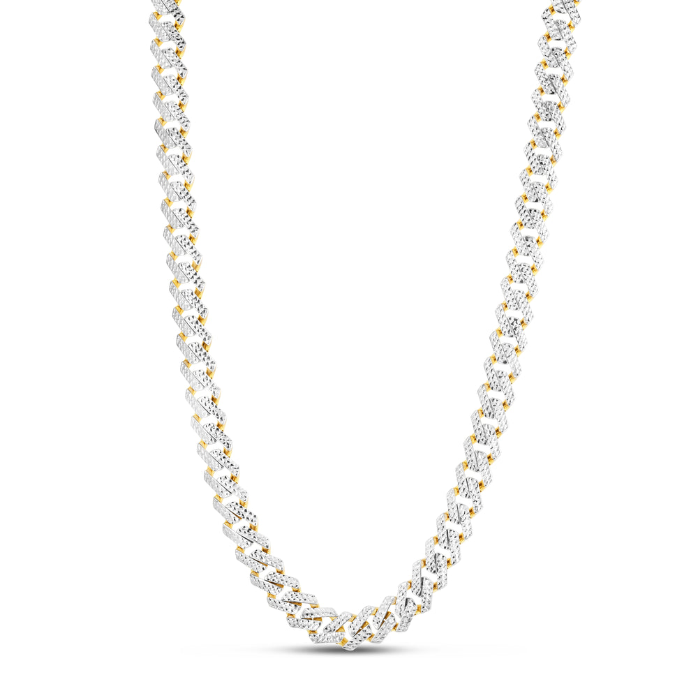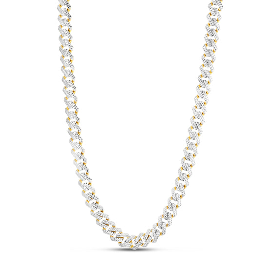 Description | 14K Yellow Gold 11.5mm White Pave Modern Lite Edge 24" Chain Necklace with Box (Both Side Push) Clasp. |