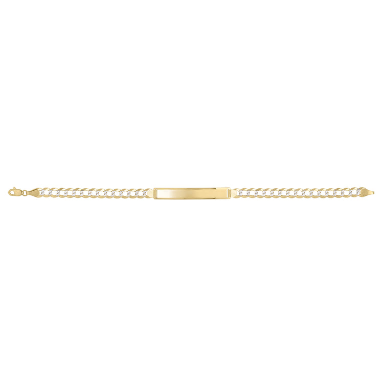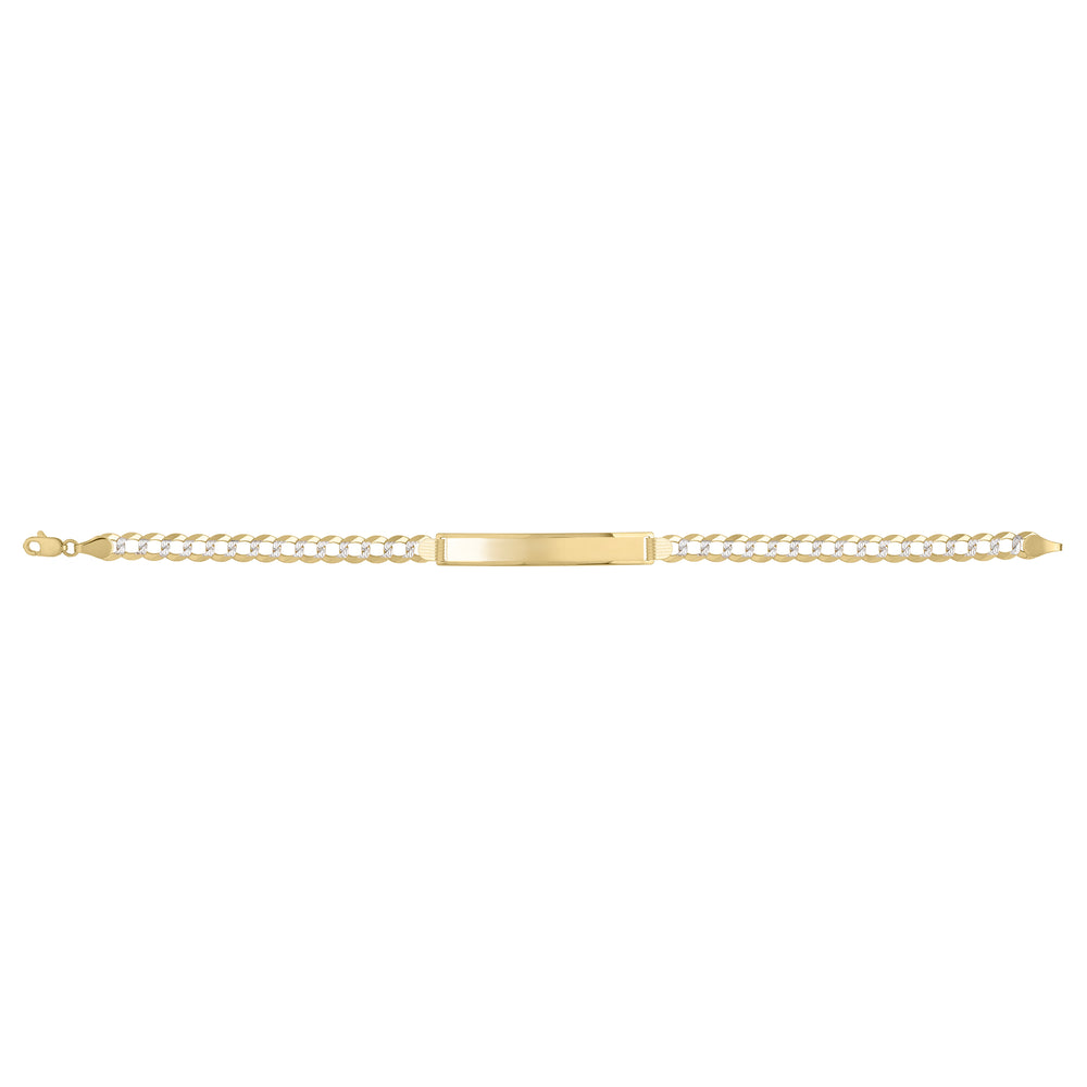 System Description | 14K 7in Yellow Finish White Pave Curb ID Bracelet with Lobster Clasp |