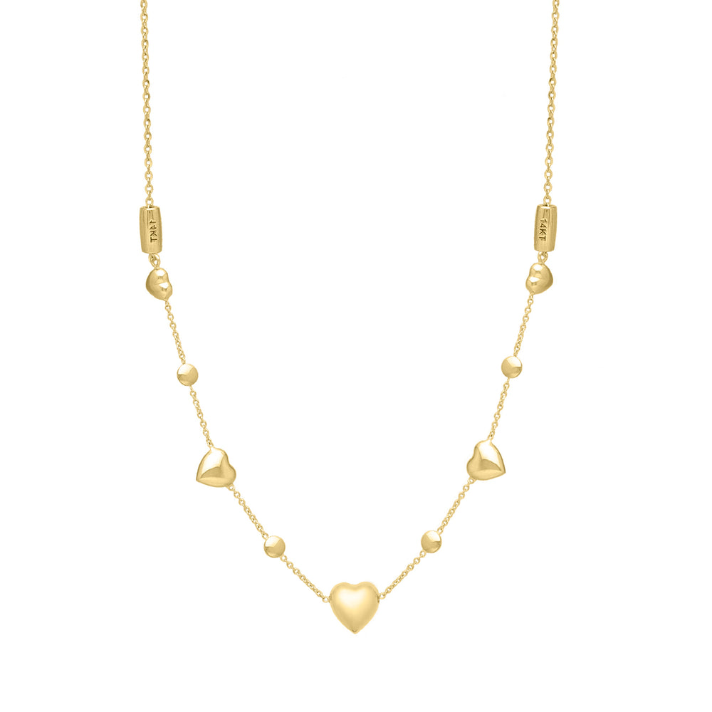 14K Adjustable Puff Heart Bead Necklace-Yellow | Lobster