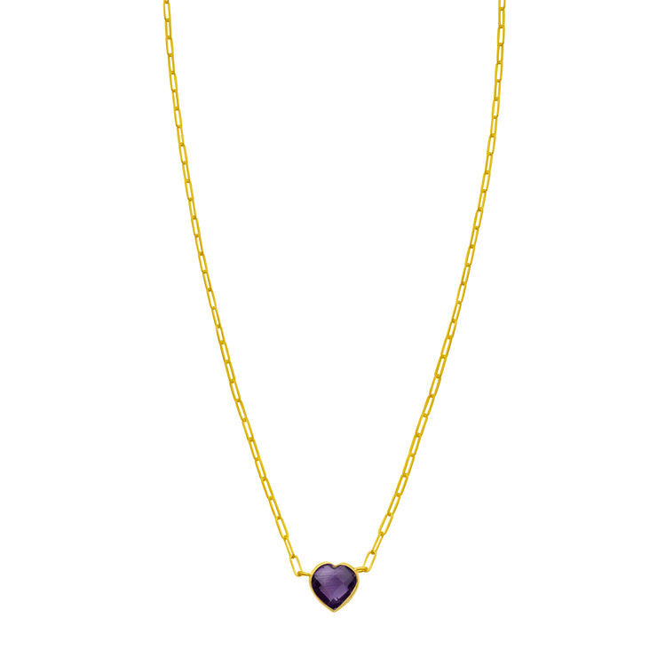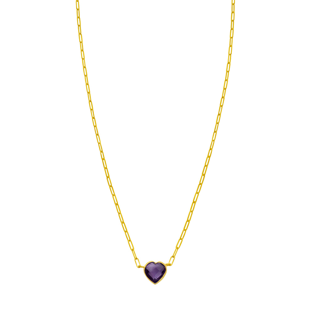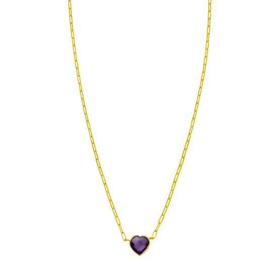 14K Amethyst Heart Necklace-Yellow | Lobster