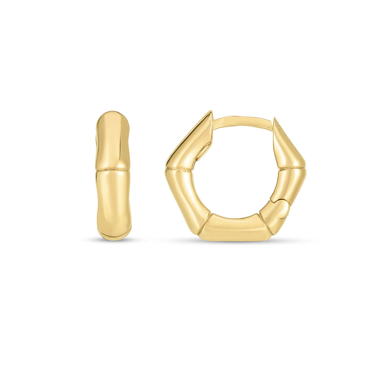 Description | 14K Yellow Gold 16mm Bamboo Huggie Hoop Earrings with Snap Clasp |