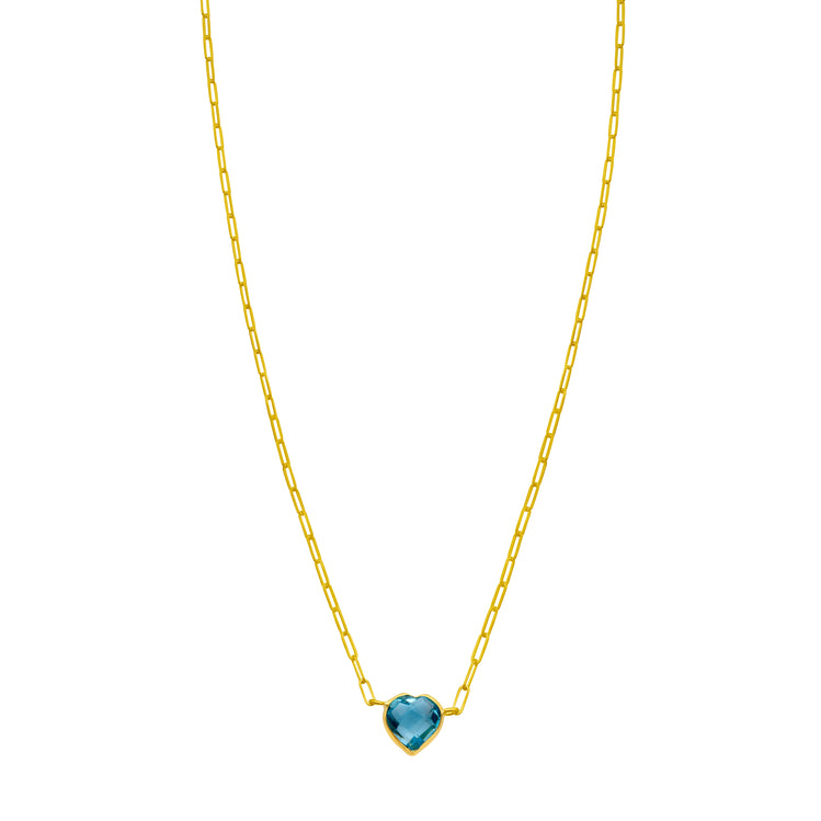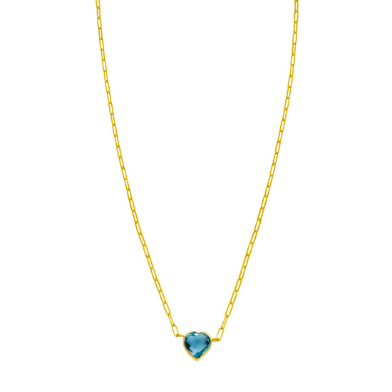 14K Blue Topaz Heart Necklace-Yellow | Lobster