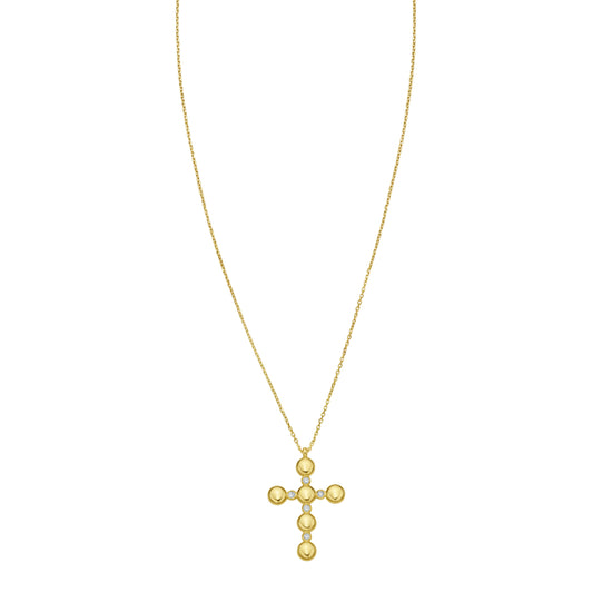 14K Diamond Cross Bauble Necklace-Yellow | Lobster
