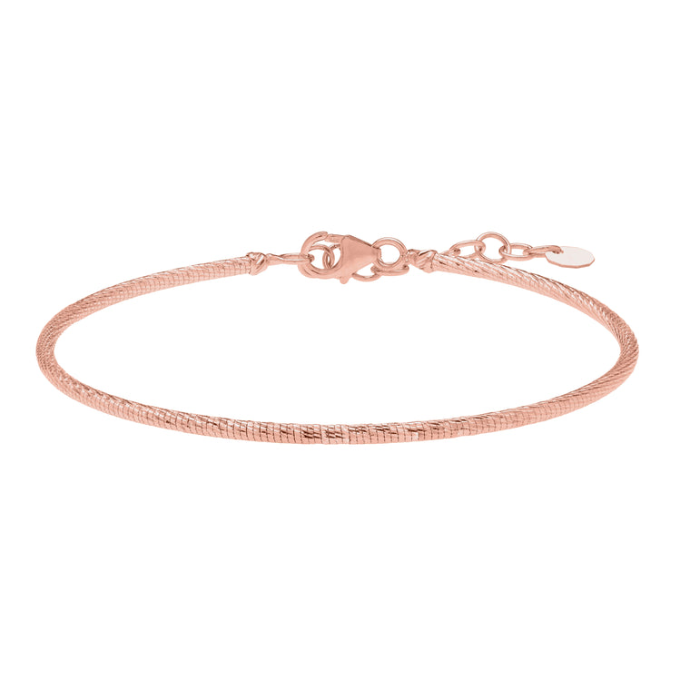 Description | 14K Rose Gold Diamond Cut Stack 7" Bracelet with Pear Shaped Lobster Clasp |