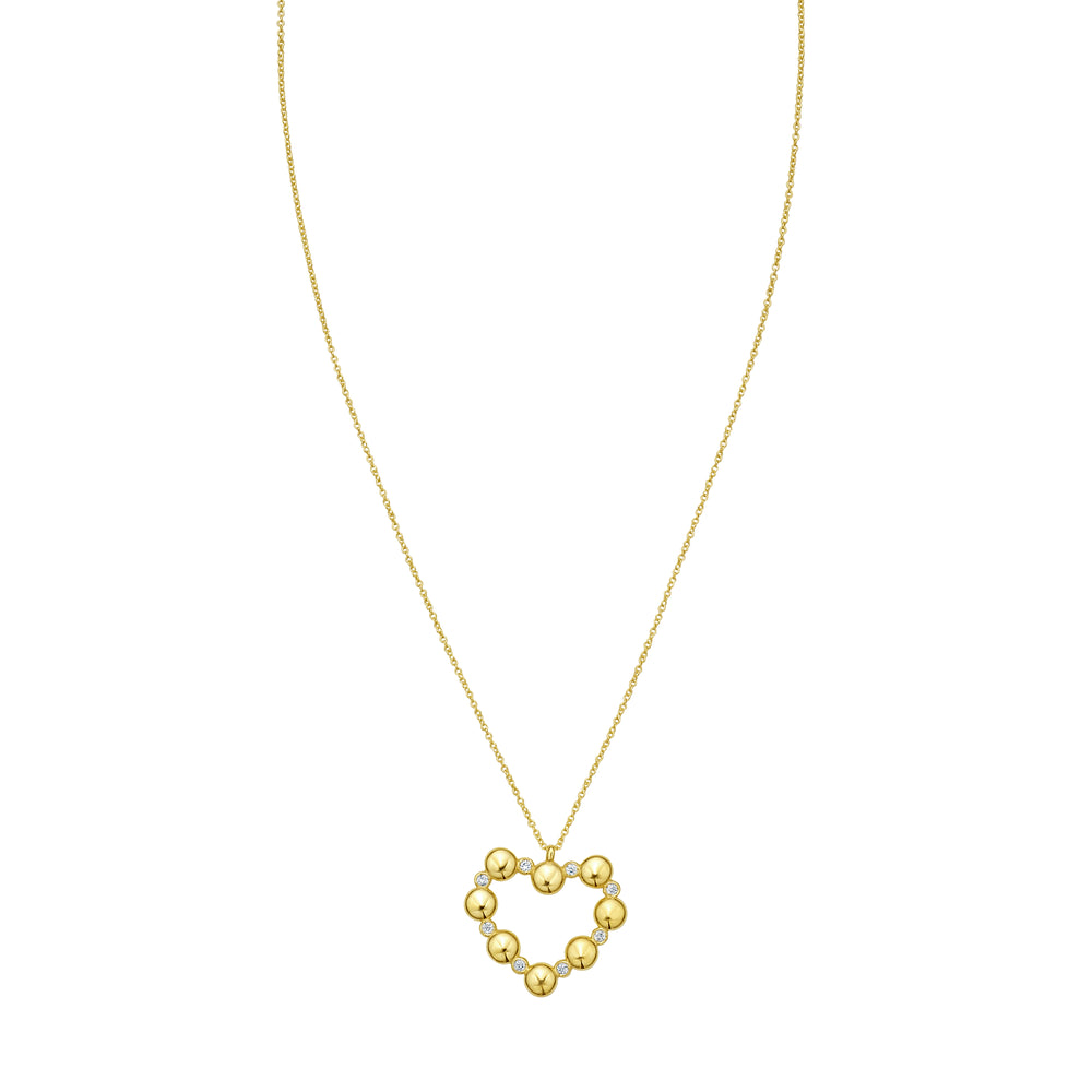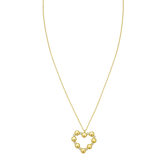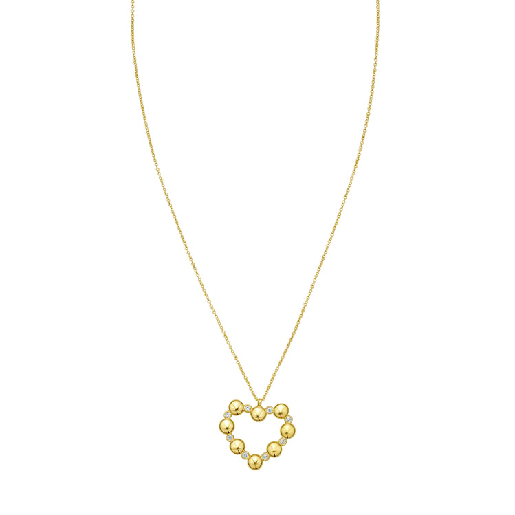 14K Diamond Heart Bauble Necklace-Yellow | Lobster