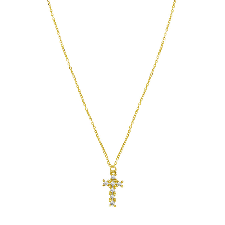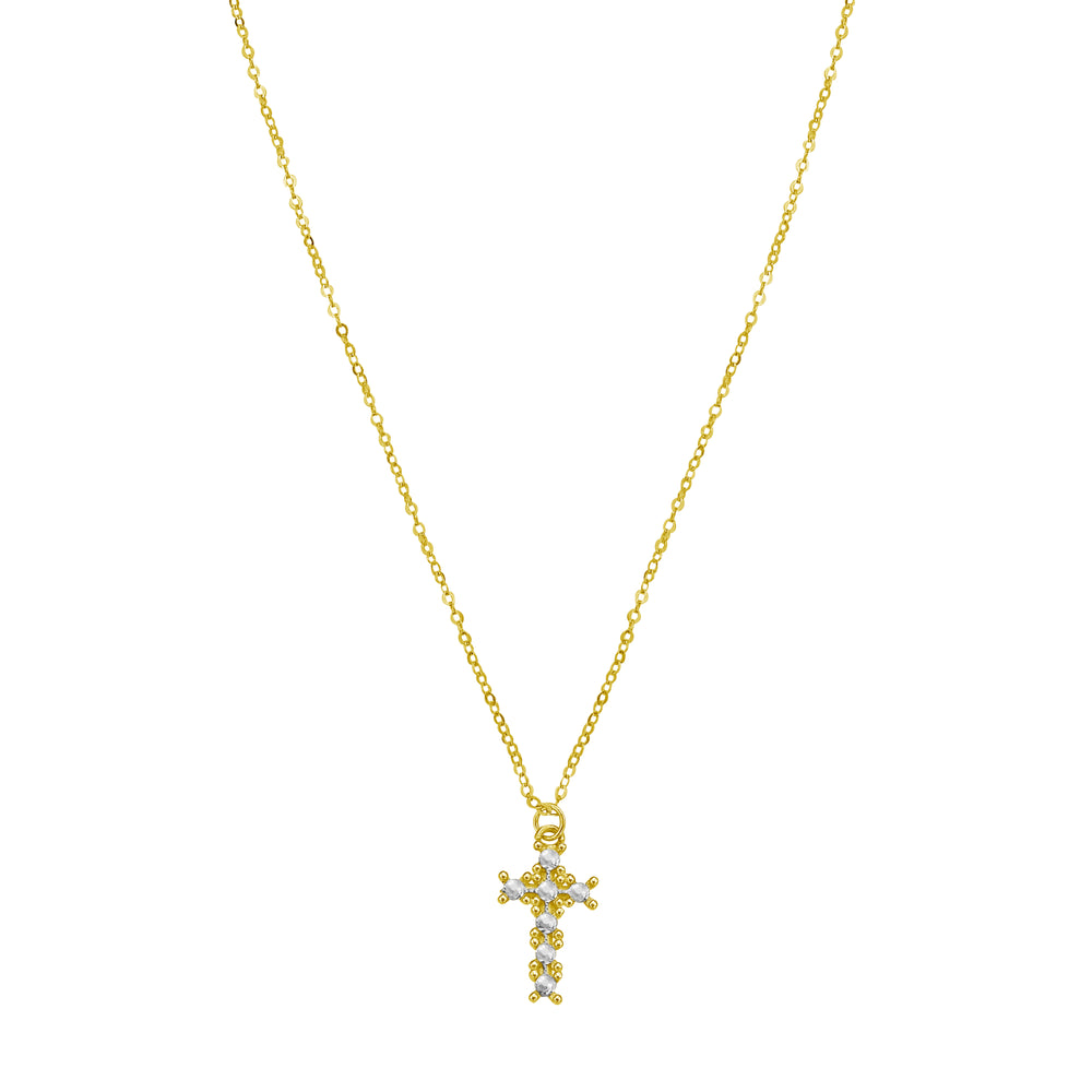 14K Diamon'Oro Cross Necklace-Two-tone | Lobster