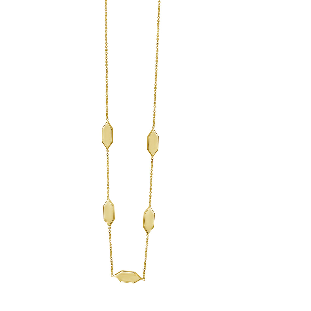 System Description | 14K 18in Yellow Finish Polished Rhombus Stationed Necklace with Pear Shaped Lobster Clasp |