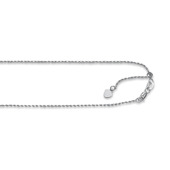 Description | 14K White Gold 0.95mm Adjustable Rope 22" Chain with Lobster Lock |