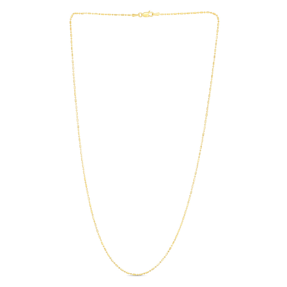 System Description | 14K 16in Yellow Gold Diamond Cut/TexturedBar & Bead Chain with Lobster Clasp |