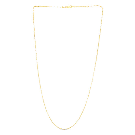 Description | 14K Yellow Gold 0.9mm Diamond Cut Bar and Bead 16" Chain with Lobster Lock |