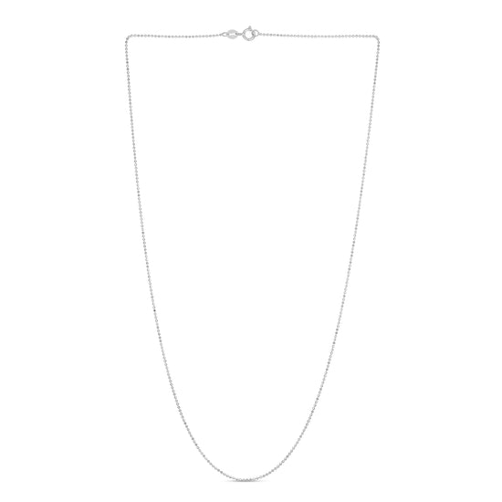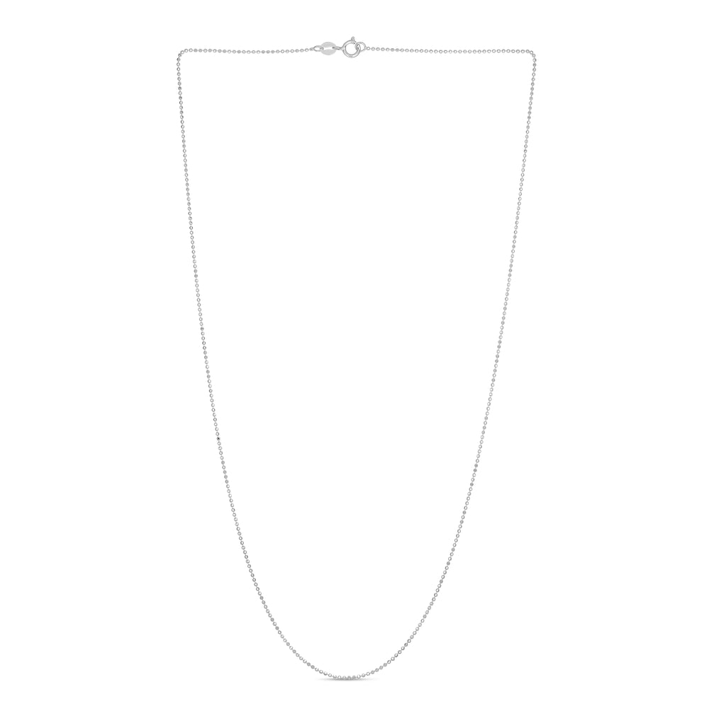 Description | 14K White Gold 0.9mm Diamond Cut Bead 16" Chain with Spring Ring Clasp |