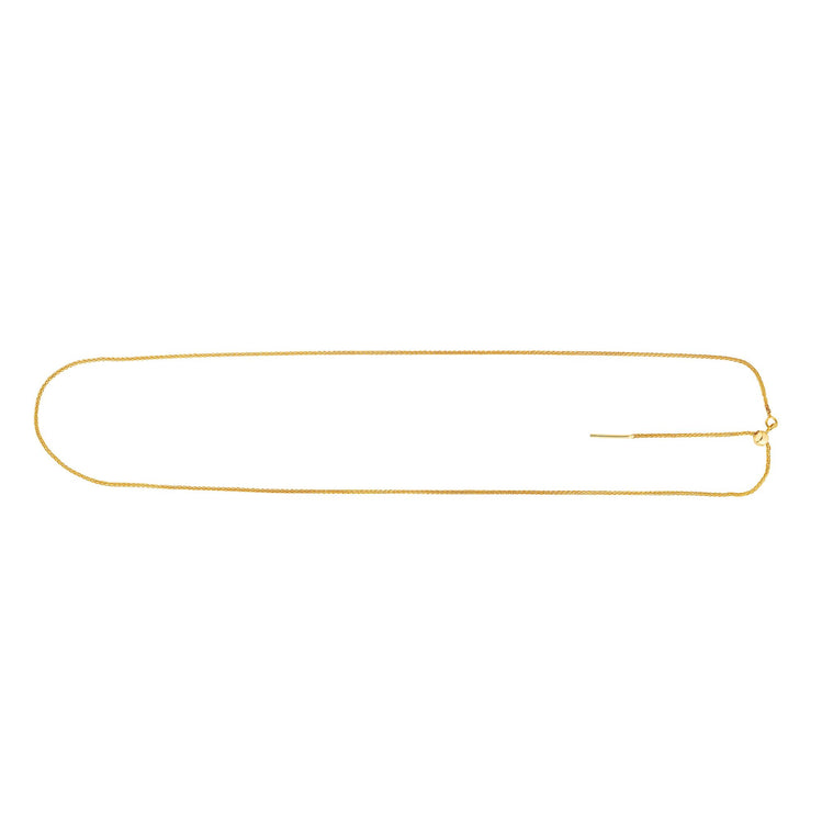 | Description | 14K Yellow Gold 1.1mm Endless Adjustable Round Wheat 22" Chain with Endless Lock |