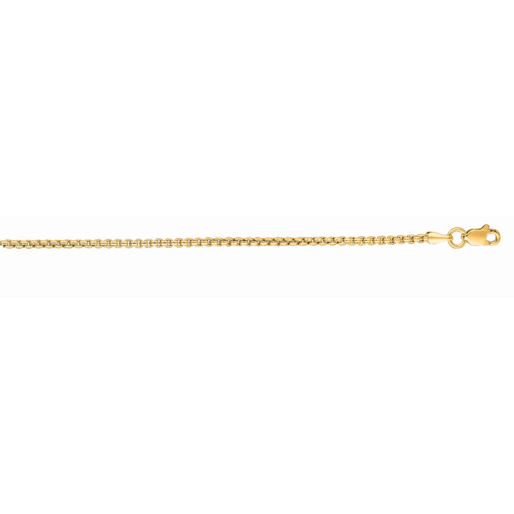 | Description | 14K Yellow Gold 1.3mm Lite Round Box 16" Chain with Lobster Lock |