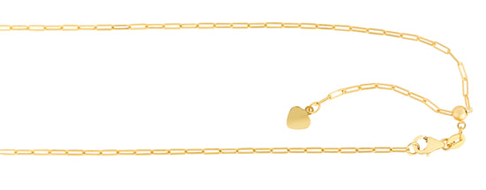 | Description | 14K Yellow Gold 1.5mm Adjustable Paperclip 22" Chain with Lobster Lock |