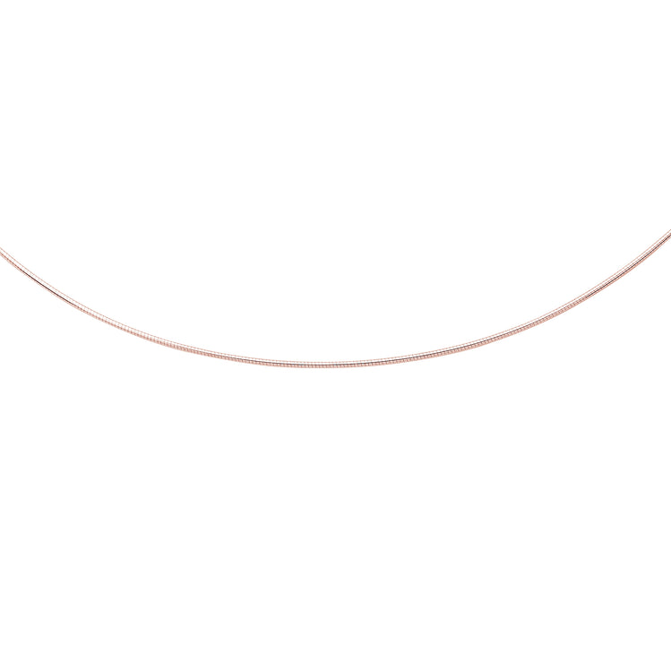 | Description | 14K Rose Gold 1.5mm Round 17" Omega with Screw Back Lock |