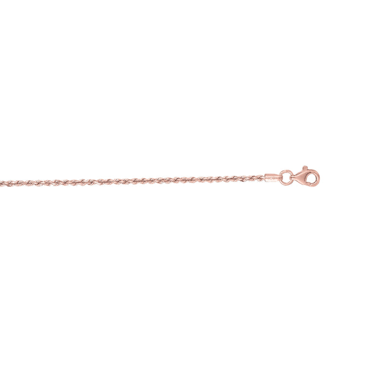 | Description | 14K Rose Gold 1.6mm Diamond Cut Royal Rope 16" Chain with Lobster Lock |