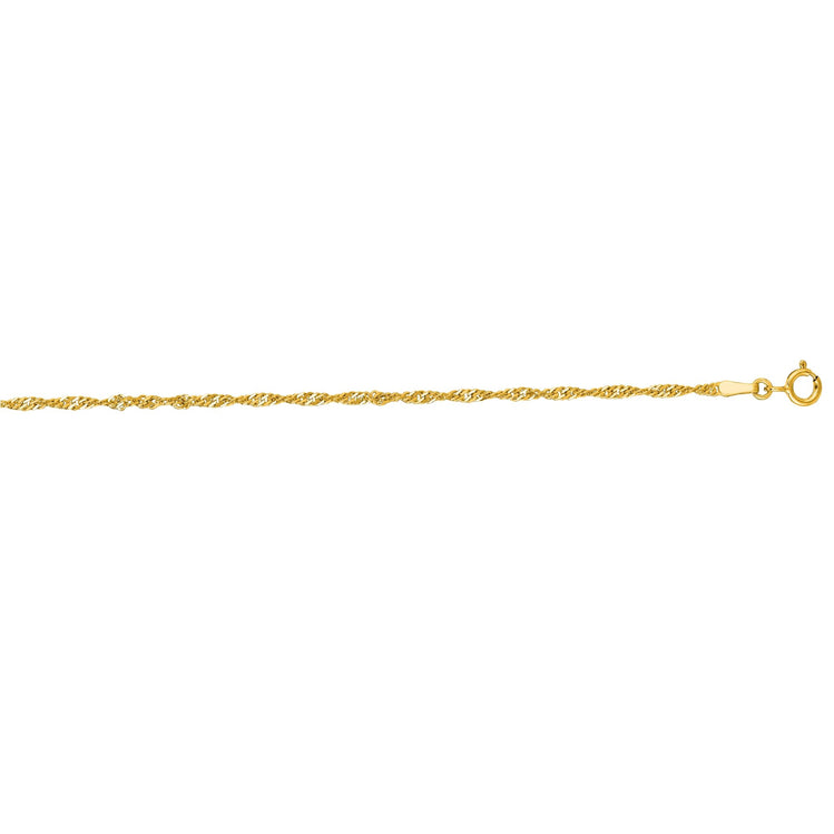 | Description | 14K Yellow Gold 1.8mm Singapore 16" Chain with Spring Ring Clasp |