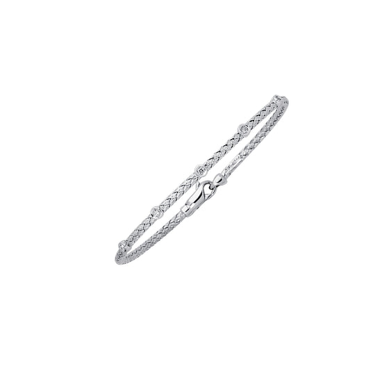 Description | 14K White Gold 7.25" .15ct Diamond Station Woven Bangle |