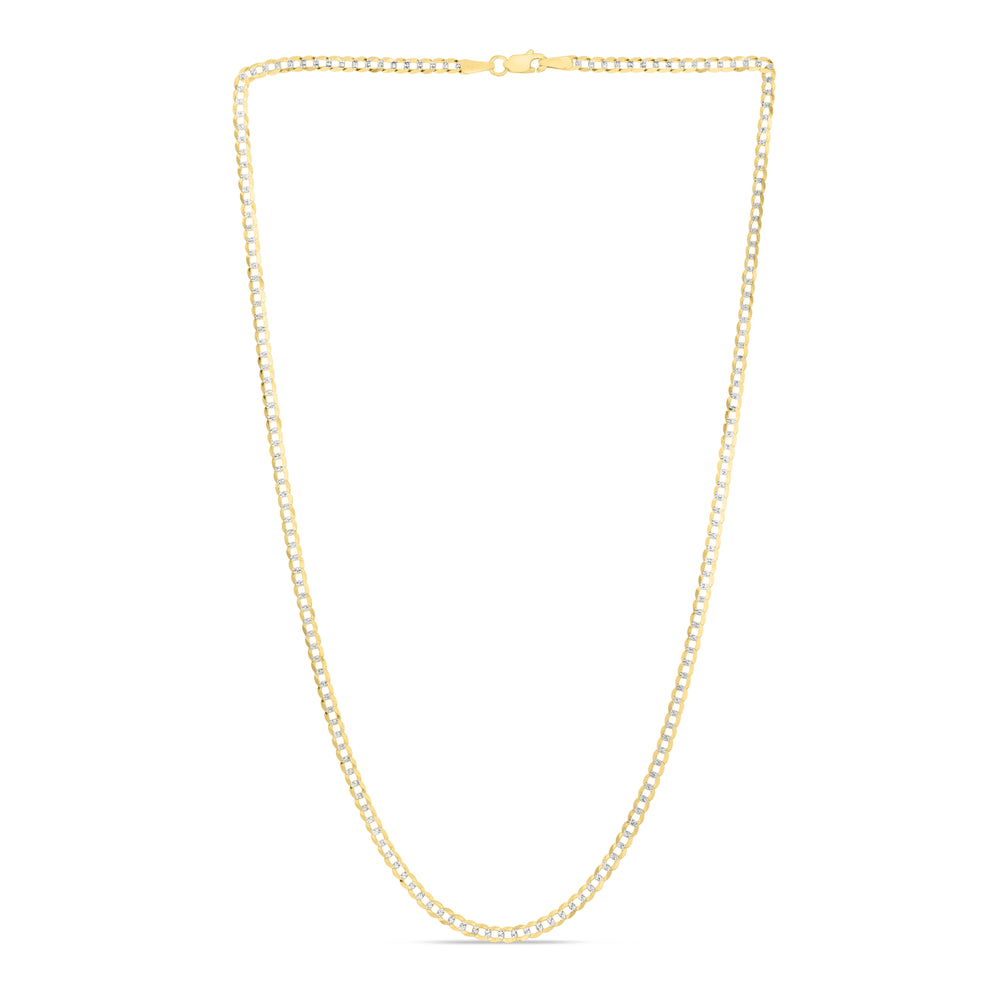 | System Description | 14K 16in Yellow Gold White Pave Look Curb Chain with Lobster Clasp |
