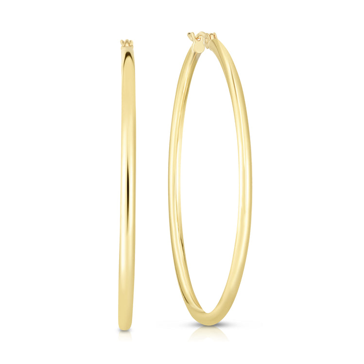 | Description | 14K Tri-color Gold 2x15mm Diamond Cut Station Hoop Earring |