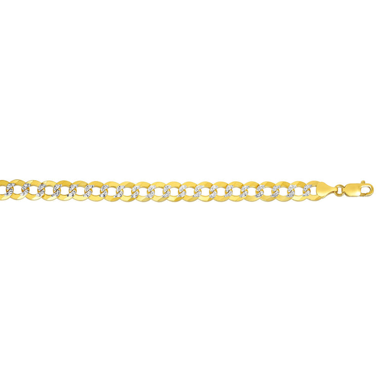 Description | 14K Yellow Gold 8.3mm White Pave Curb 8.5" Chain Bracelet with Lobster Lock |