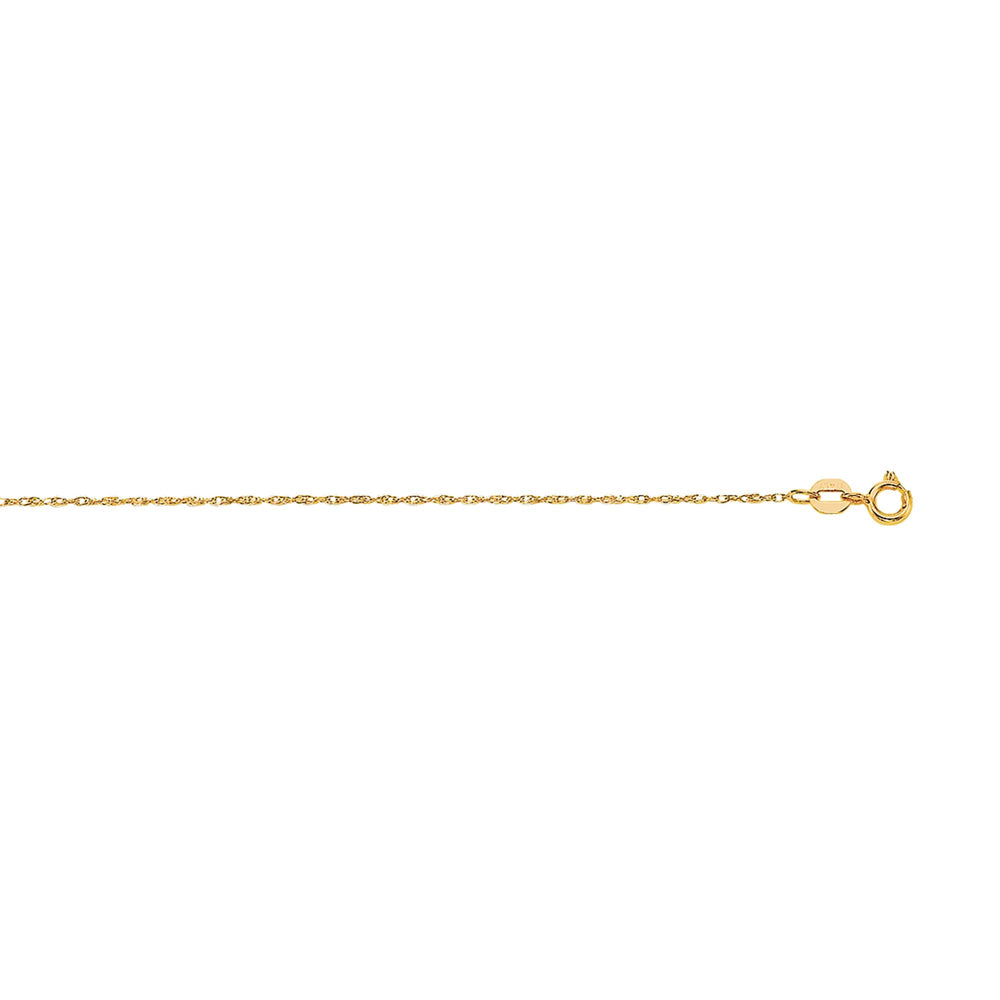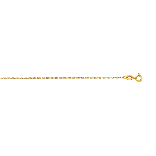 Description | 14K Yellow Gold .8mm Machine Rope 18" Chain (Carded) with Spring Ring Lock |