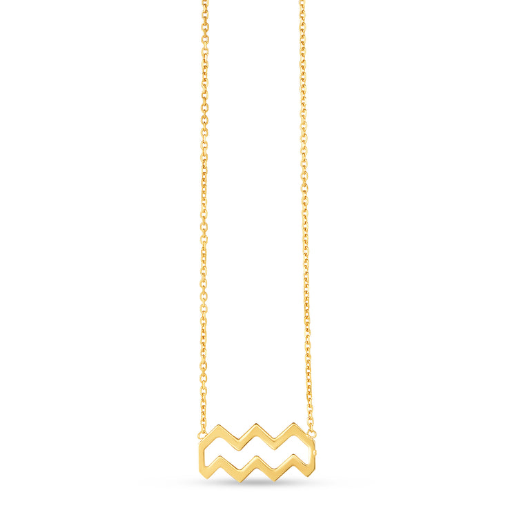 | Description | 14K Yellow Gold Aquarius 18" Necklace with Push Back Clasp. |