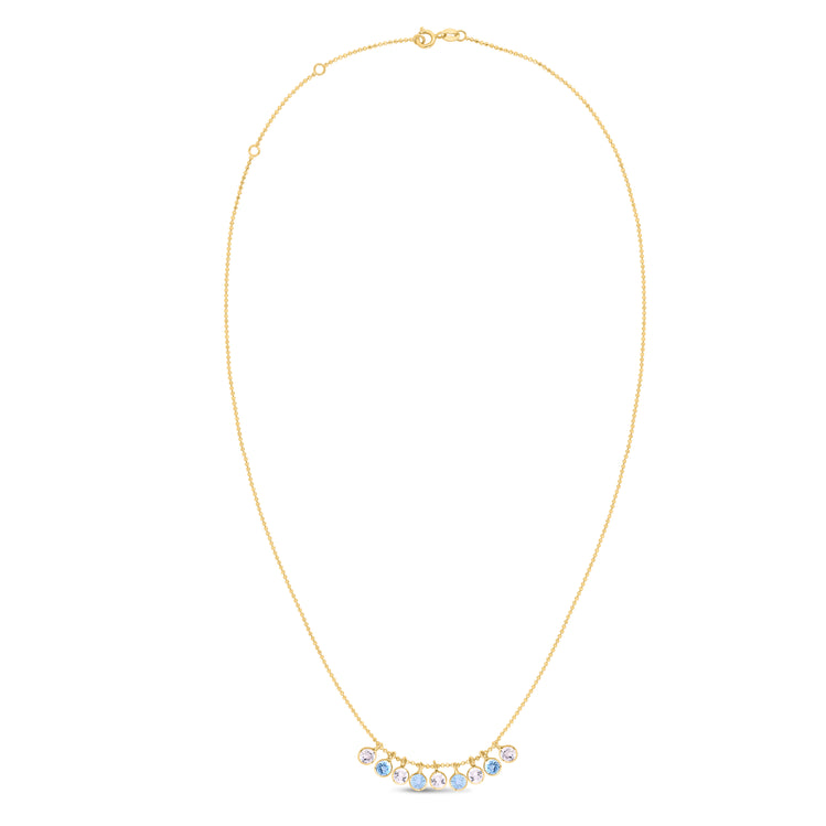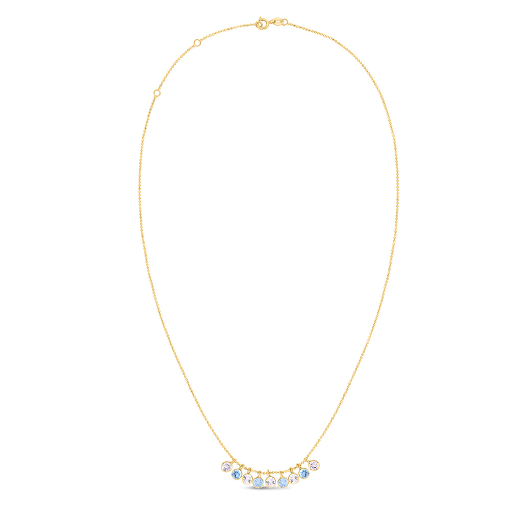 | Description | 14K Yellow Gold 18" Blue and White Topaz Dancing Drop Necklace |