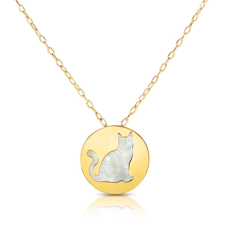 | Description | 14K Yellow Gold 18" Cat Mother of Pearl Necklace |