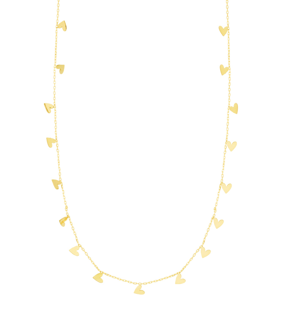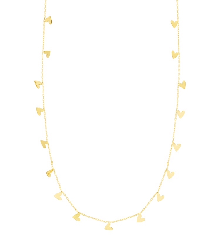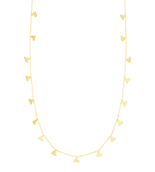 Description | 14K Yellow Gold Dangling Hearts 18" Necklace with Spring Ring Clasp. |