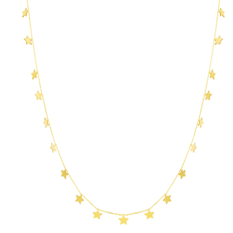 Description | 14K Yellow Gold Dangling Stars 18" Necklace with Spring Ring Clasp. |