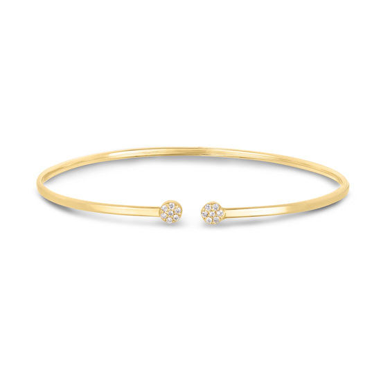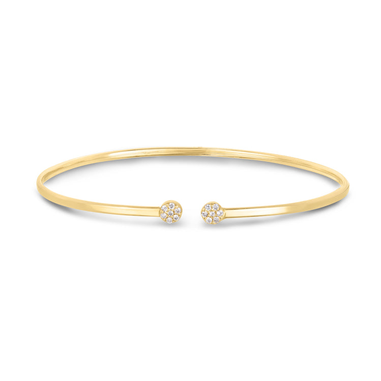 | Description | 14K Yellow Gold .14ct Diamond Cluster Cuff 2mm Bangle |