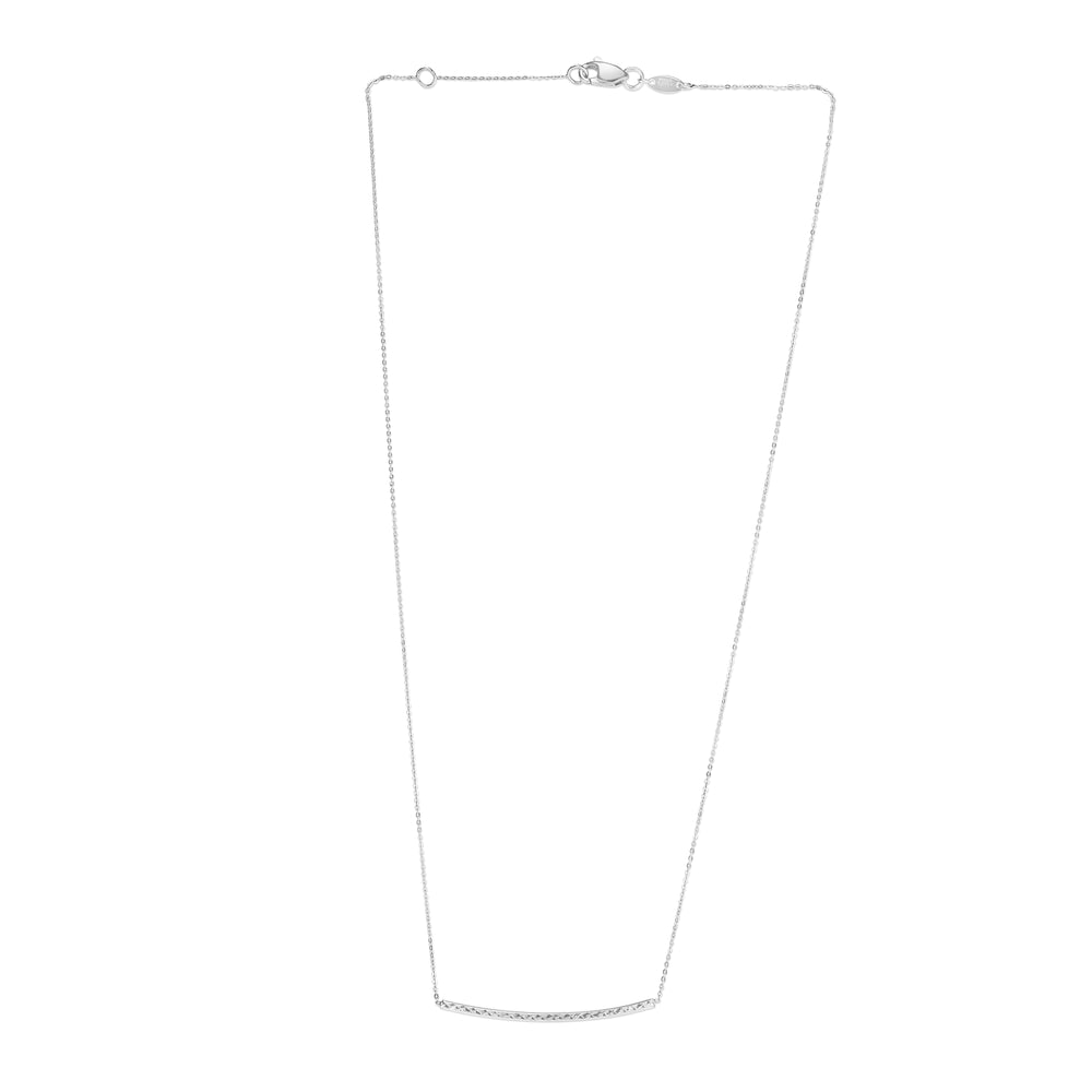 | Description | 14K 17" White Gold Diamond Cut Sideways Bar Necklace with Lobster Clasp. |