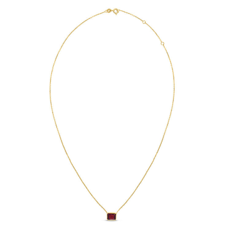 | Description | 14K Yellow Gold 18" Emerald Cut Garnet Necklace |