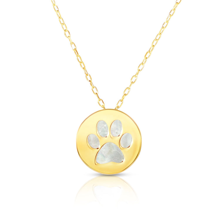| Description | 14K Yellow Gold 18" Paw Print Mother of Pearl Necklace |