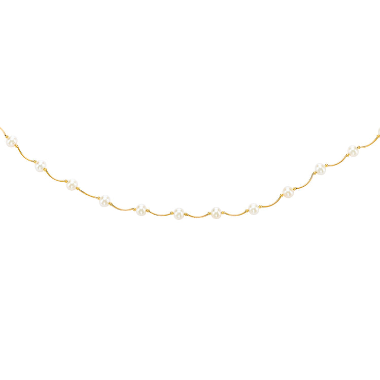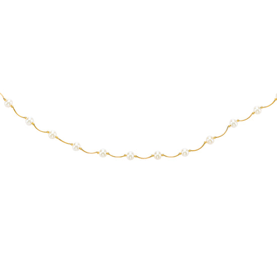 | Description | 14K Yellow Gold 17" Pearl Station Scalloped Necklace |