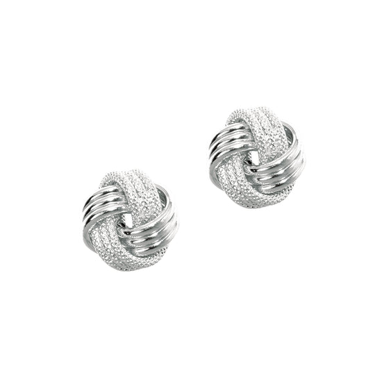 | Description | 14K White Gold Polished & Diamond Cut Love Knot Stud Earring |