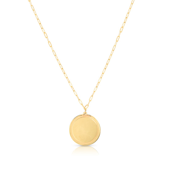 | Description | 14K Yellow Gold 18" Round Tag with Paperclip Chain |