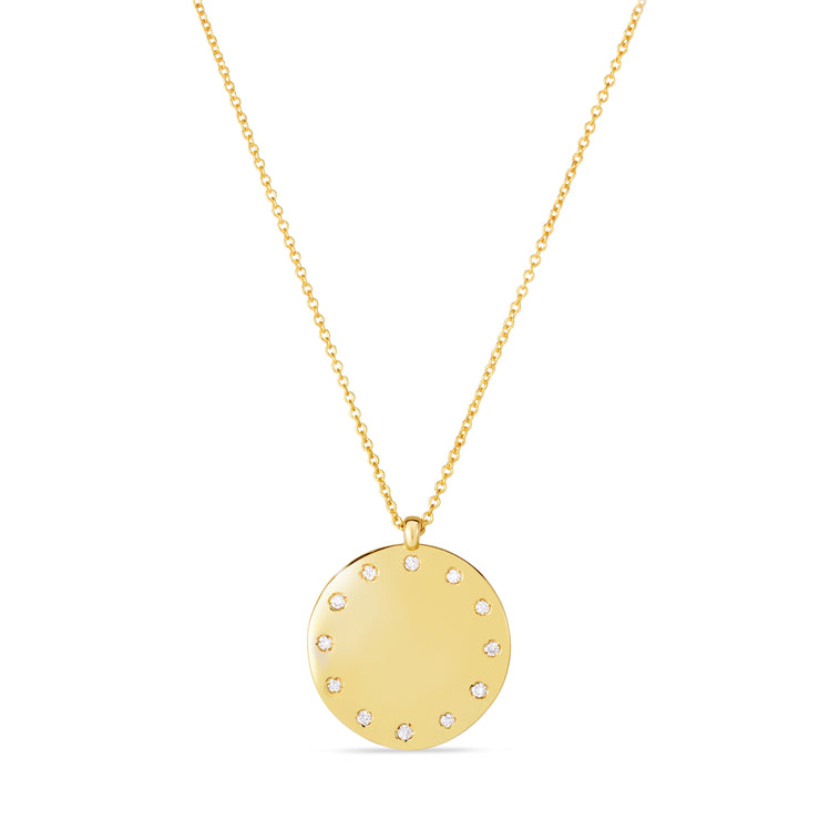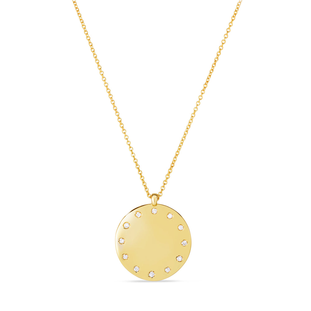 | Description | 14K Yellow Gold 18" Small .06ct Diamond Dial Necklace |