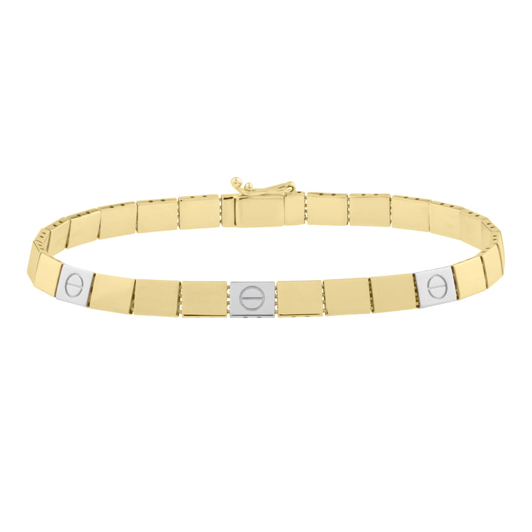 | System Description | 14K 7in Two Tone Finish Polished Rectangle Alternate Nail Head Link Bracelet with Box with One Side Figure 8 Clasp |