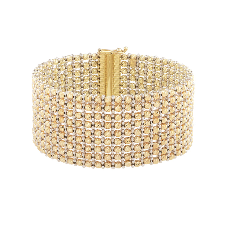 | System Description | 14K 7in Two Tone Finish Diamond Cut/Textured Multi-Strand Beaded Bangle with Slide with Double Figure 8 Clasp |